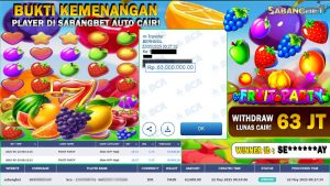 BUKTI KEMENANGAN 22 MEI 2025 DI GAME FRUIT PARTY WD 63 JT